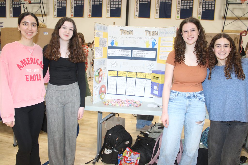 Sophomores Maggie Hatzis, Katie McGuinness, Ella Price and Sophia Tramontozzi undertook a project that entails improving Town Meeting.