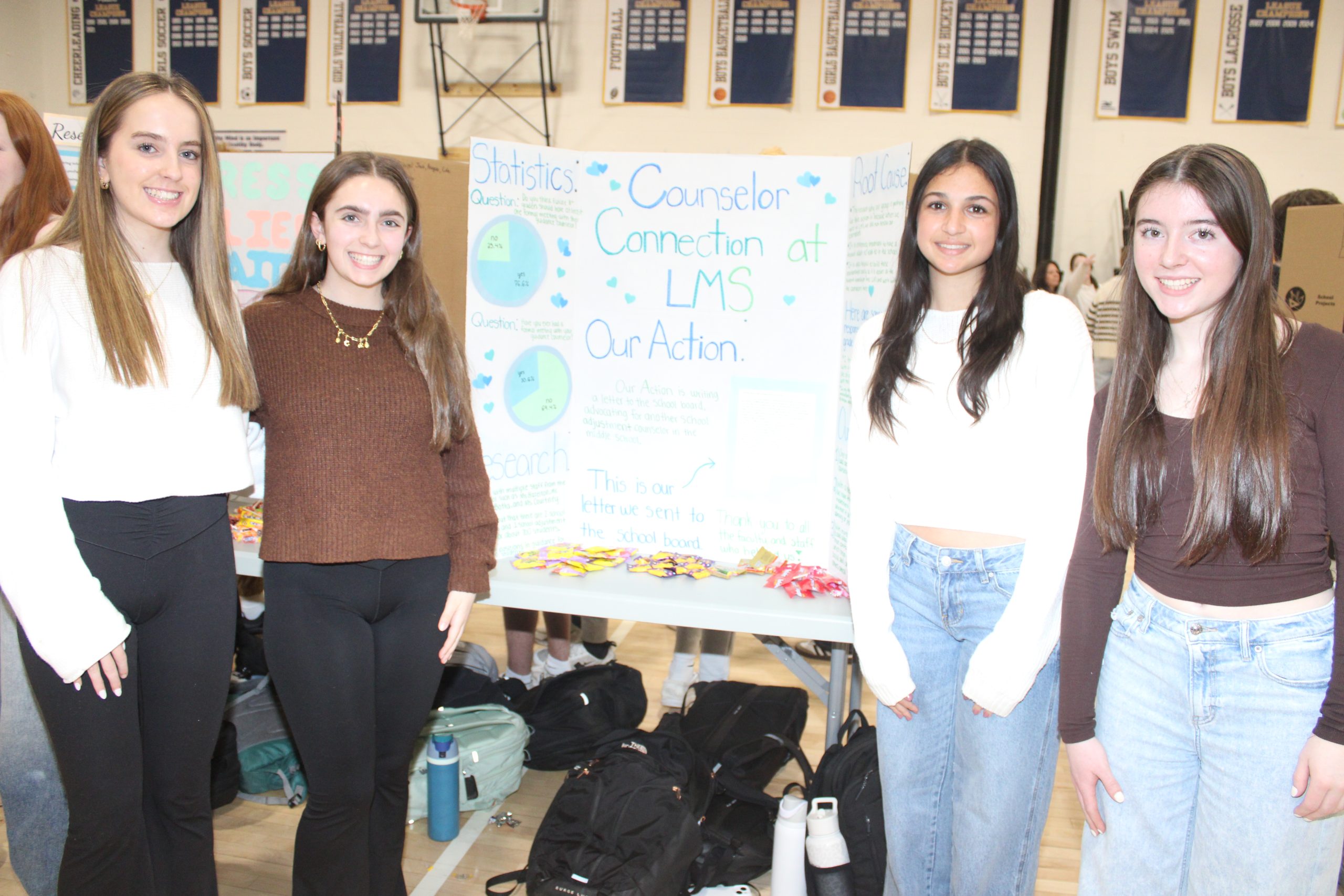 Sophomores Giada Antidormi, Hannah Doherty, Lilli McSweeney and Charlotte Rose undertook a project that seeks to improve counselor connections at Lynnfield Middle School.