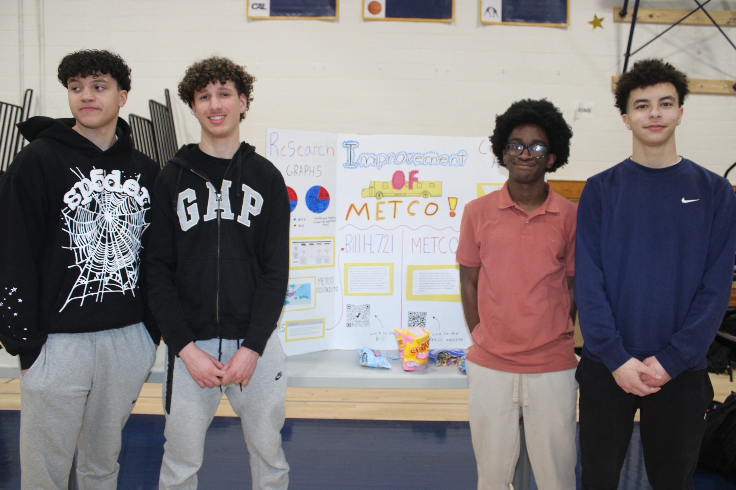 Sophomores Nour Al-Mamori, Adrian Marton, Ethan DeFrietas and Joe Rosa undertook a project in support of a bill that seeks to improve the METCO program and would allow another bus to be funded by the state. Director Curtis Blyden informed the Villager that the program currently has one main bus for METCO students and a late bus for students who do extracurricular activities.