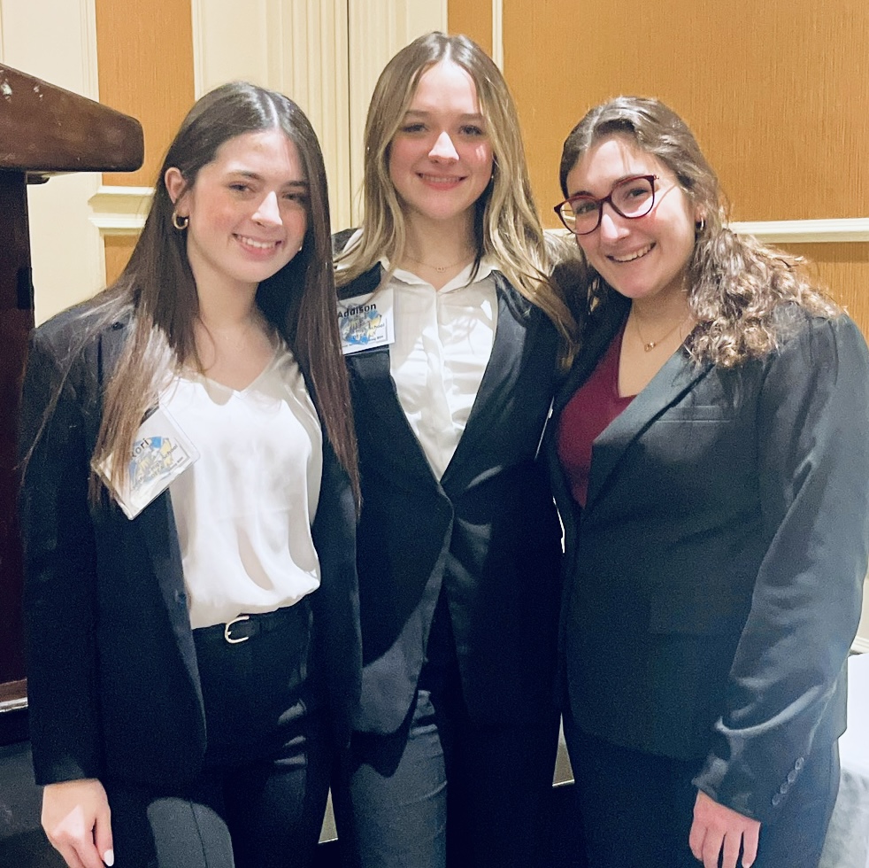 LHS DECA TEAM FOUNDERS, from left, Rori Caprio, Addison Munion and Gianna Micielli shined during the recent DECA District 6 Career Development Conference in Danvers, and qualified for the state conference in Boston next month. (Courtesy Photo)