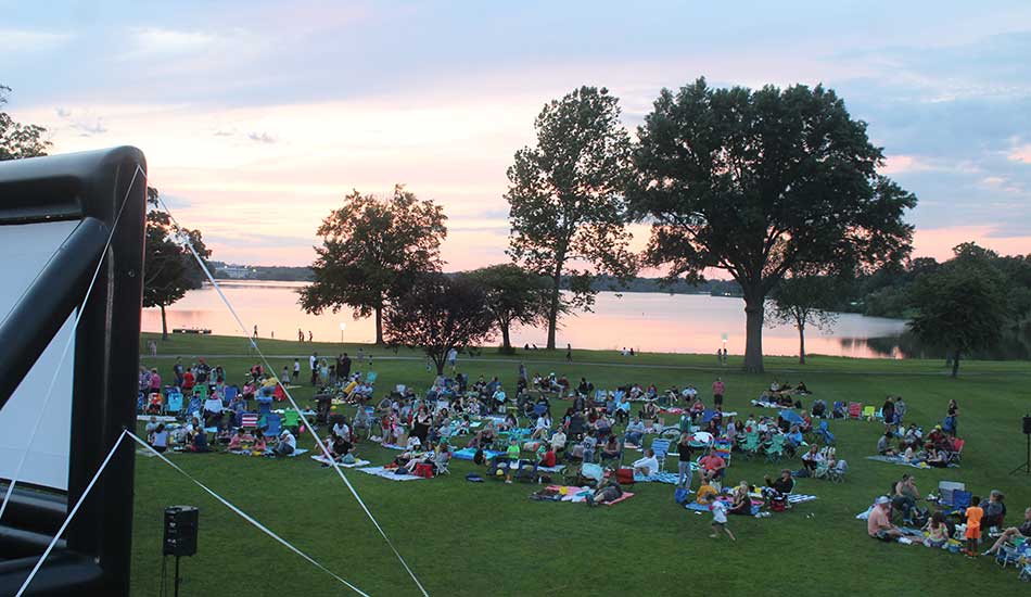 AN AUDIENCE was ready to enjoy another edition of Movies by the Lake presented by WCAT during a beautiful twilight on the Lower Common last night. WCAT played Honey, I Shrunk the Kids. Up next is Ferris Bueller’s Day Off on July 29. Movies begin at nightfall. (Dan Pawlowski Photo)
