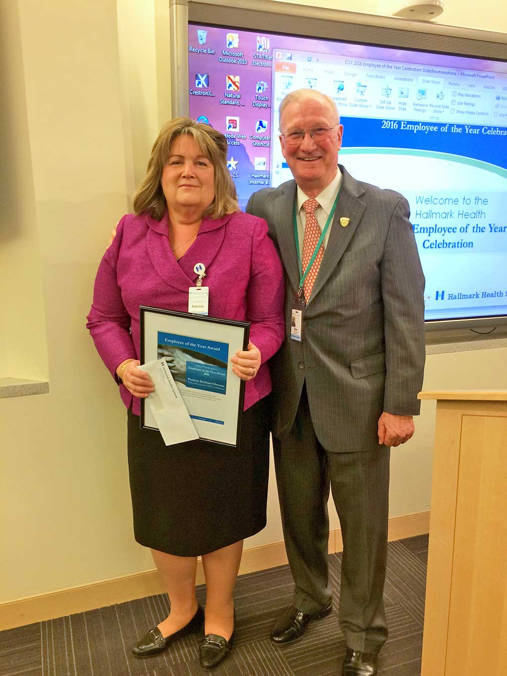 Last month, Hallmark Health recognized one of its unsung heroes at the Employee of the Year celebration at Melrose-Wakefield Hospital. Patricia Strehan-Cheema, a Melrose resident for 16 years, was named 2016 Employee of the Year among a pool of 12 outstanding candidates. The honor is awarded annually to the employee who most strongly embodies Hallmark Health’s cornerstones of achieving excellence: People, quality, growth, service and fiscal responsibility.