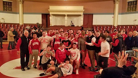 In was a memorable Brawl in the Hall that decided the league this winter when Melrose and Wakefield wrestled for the league title at Memorial Hall. Melrose prevailed and added the 2019 ML title to their growing list of championships. The team later crowned two state champs in Hunter Adrian and Sean Herbert and 4 All-Conference wrestlers. They also earned silver at the D2 North finals and were 5th at States.