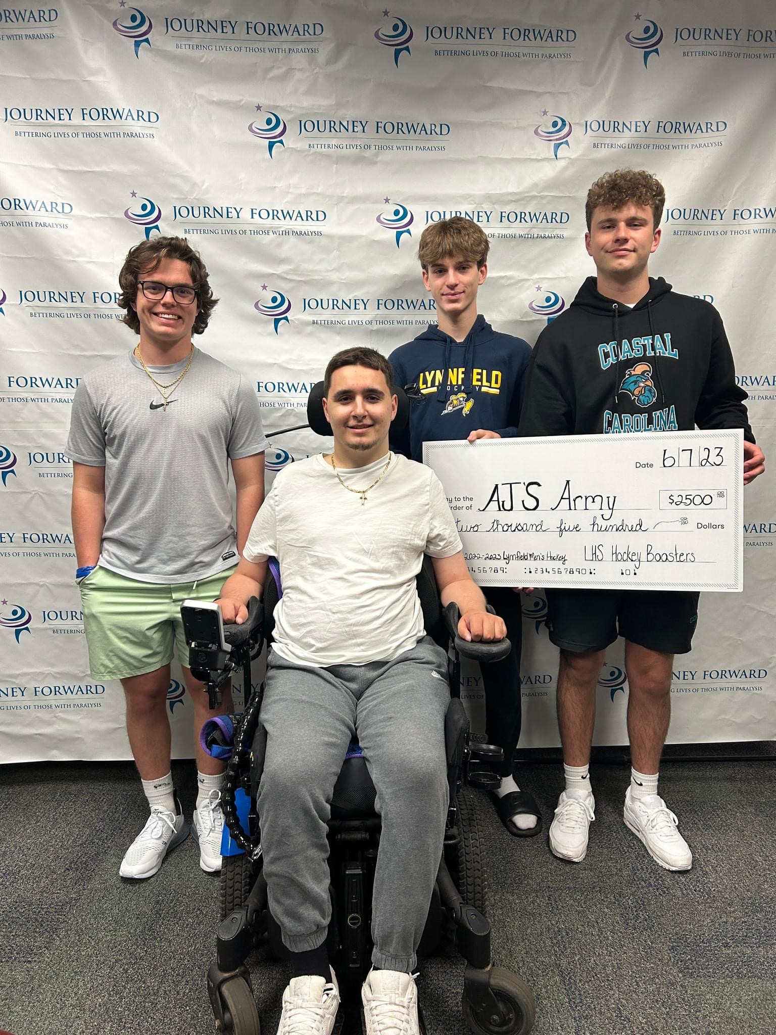 AJ suffered a traumatic spinal cord injury on Jan. 26, 2021. AJ was injured when he had a head-on-hit into the boards, which resulted in the young player being paralyzed from the neck down.