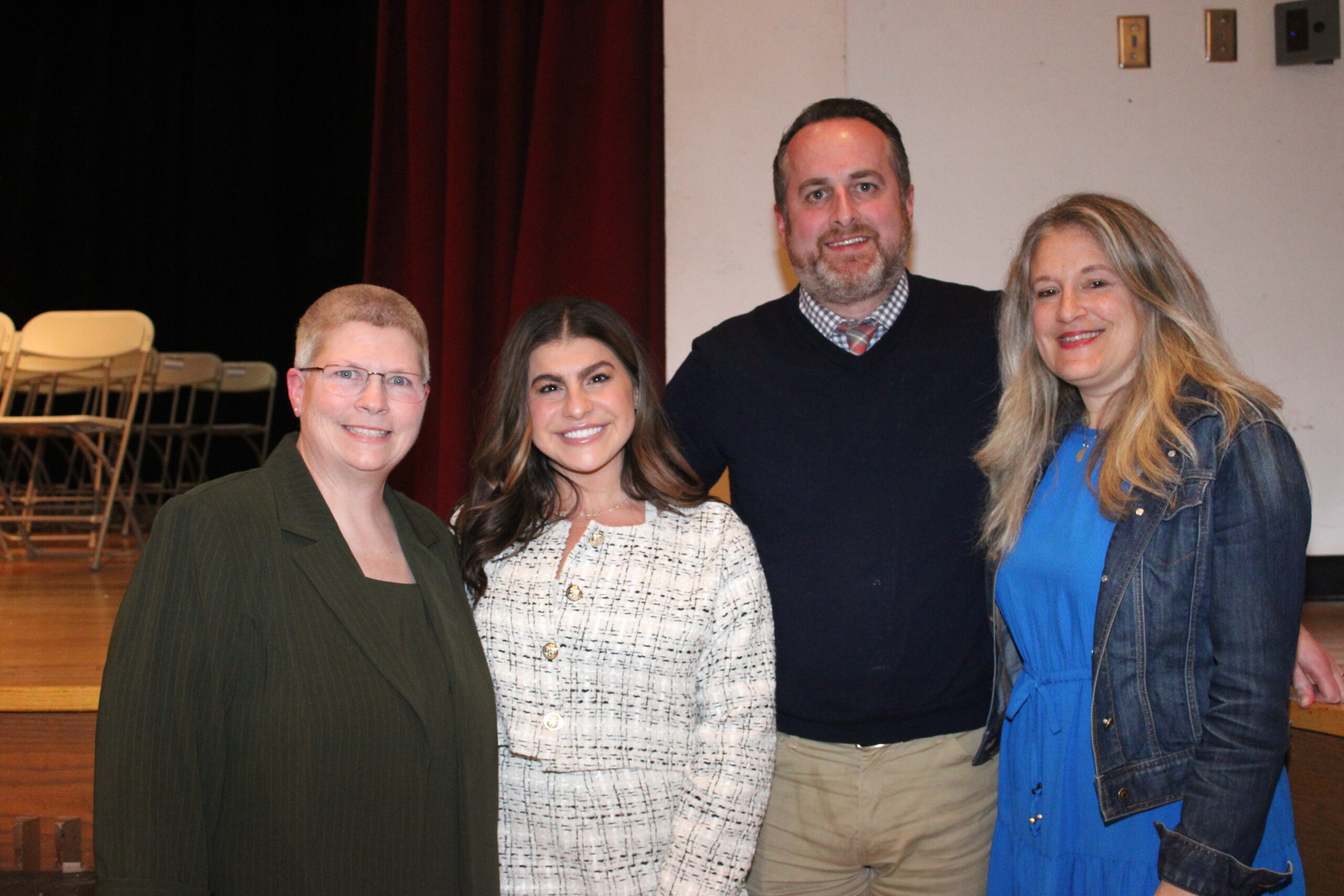 NHS senior member Isabelle Moschella presented the Leadership Award to library media specialist Janice Alpert. Moschella recognized Alpert in the wake of the School Committee recently voting to eliminate her position in the recommended fiscal year 2025 operating budget. Interim Superintendent Tom Geary, School Committee Chair Kate DePrizio and School Committee member Jim Dillon sat in the front row during the ceremony. School Committee member Jamie Hayman also attended the ceremony, but he sat with his wife Christina in order to celebrate their daughter Ella’s induction.