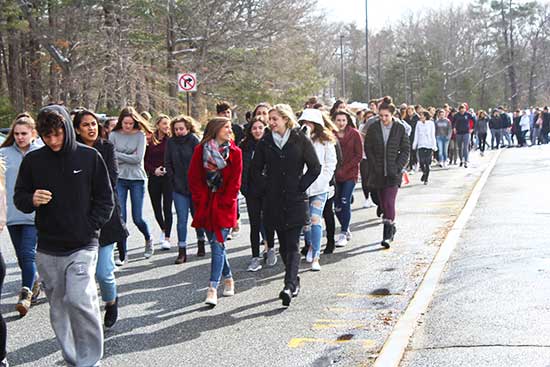 The 300 students who walked out of class filed out of the high school’s front lobby and proceeded to walk around the front circle in the parking lot at 10 a.m. School officials and School Resource Officer Patrick Curran monitored the situation closely and there were no incidents.
