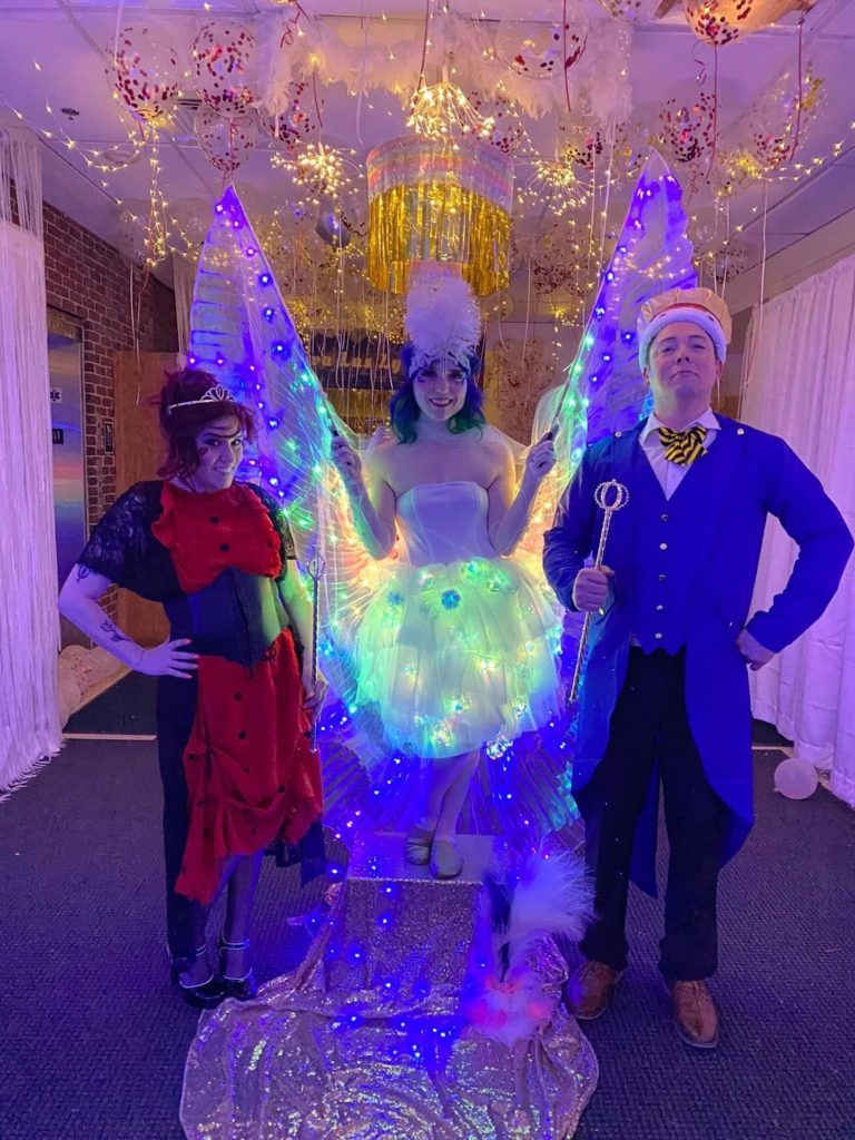 “The Viva Las Lynnfield” theme included Caesars Palace (jousting ring); Marquee Night Club (live DJ); Monte Carlo “Casino” (cards were provided on mock casino tables); Shark Reef Aquarium (mechanical shark ride); “The Strip” with an all you can eat buffet (Chick-fil-A sandwiches, McDonald’s cheeseburgers, Marano’s Trattoria mac and cheese, Dunkin Donuts iced coffee station and donuts, chocolate fountain, cupcakes, etc.); the Flamingo Hotel pool area (relaxing area complete with lounge chairs, floats, and “jacuzzi”), as well as tarot card readers. The last hour and a half of the event comprised of hypnotist, Joe Devito’s comedic performance with volunteer students in front of the rest of the Post-Prom attendees.