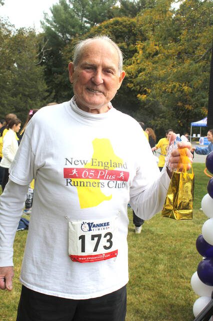 Bossi also presented prizes to the winners of the following divisions: Dillon Reilly (Under 18 Male Division), Gabriella Bottaro (Under 18 Female Division), Bryan Mallett (Age 20-29 Male Division), Michael Lawoo (Age 30-39 Male Division), Julie Tammaro (Age 30-39 Female Division), Kristen Dorsky (Age 40-49 Female Division), Mark Ellis (Age 50-59 Male Division), Andrea Braconnier (Age 50-59 Female Division), Buddy Cummings (Age 60 and Older Male Division) and Kathy Eno (Age 60 and Older Female Division).