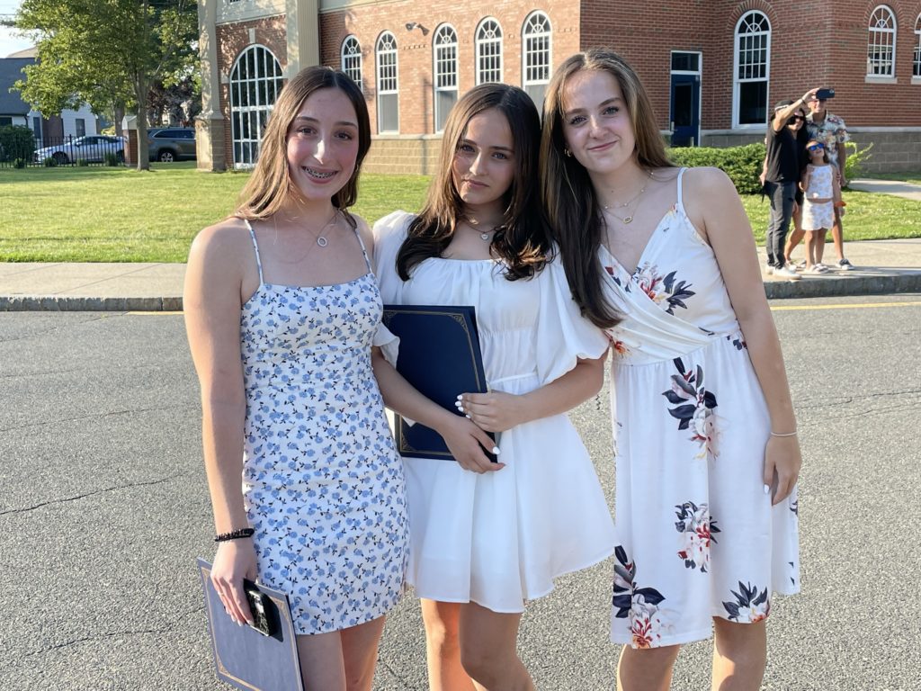 Ready for high school June 26, 2023 EIGHTH-GRADERS, from left, Allison Sweeney, Mia Capodilupo and Hannah Doherty were full of pride at the conclusion of Lynnfield Middle School’s moving on ceremony on June 15. (Dan Tomasello Photo)