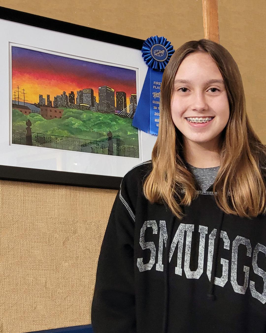 The Lynnfield Middle School seventh-grader recently won first place in the Amateur Fine Arts Division at the Topsfield Fair, which included not only a blue ribbon but a small cash prize.