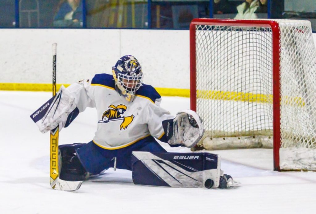 ANGELO COVINO earned the victory in Lynnfield’s last two wins, racking up 21 saves against both Martha’s Vineyard on Sunday and Marlborough on Feb. 12. (Courtesy Photo)