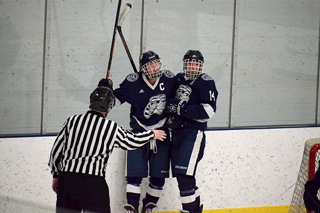 In the first period, the hosts scored the game’s first two goals both netted by E.J. Field. Jack Costanzo assisted on both of them as one of them came on the power play.