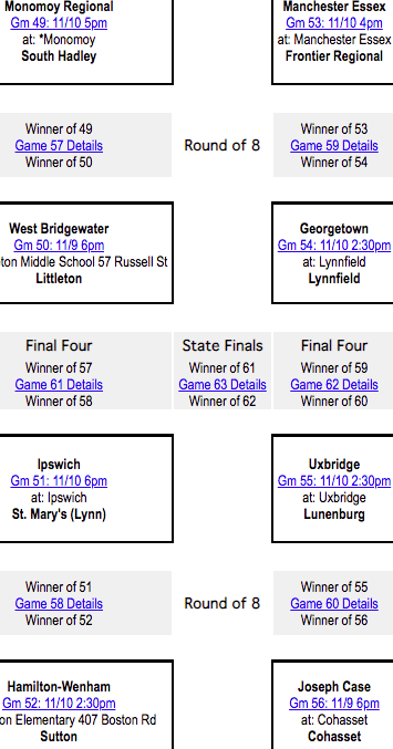 The winner of this game will face the winner of the Manchester-Essex vs. Frontier Regional game in the quarterfinals (date, location and time unknown as of press time).