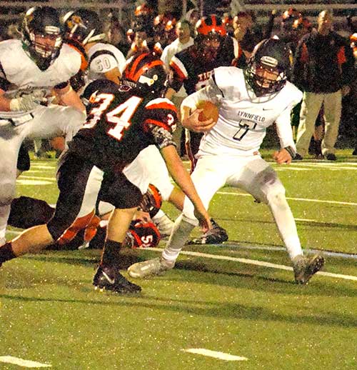 The Pioneers responded when Mortellite found Ndansi again, this time on a 35-yard TD connection. Marengi added the PAT and Lynnfield trailed 29-27 at the end of a furious first half.