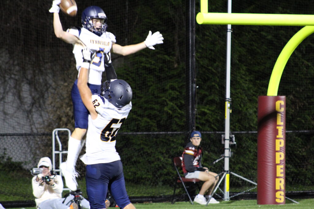 Similar to week one, Lynnfield’s opening drive was a long and methodical one. As they did throughout the night, the Pioneers used a heavy dosage of running the ball with senior back Niccolo Antidormi (14 carries, 55 yards). When Lynnfield reached the Clipper 34-yard line, they faced a 4th and 8.