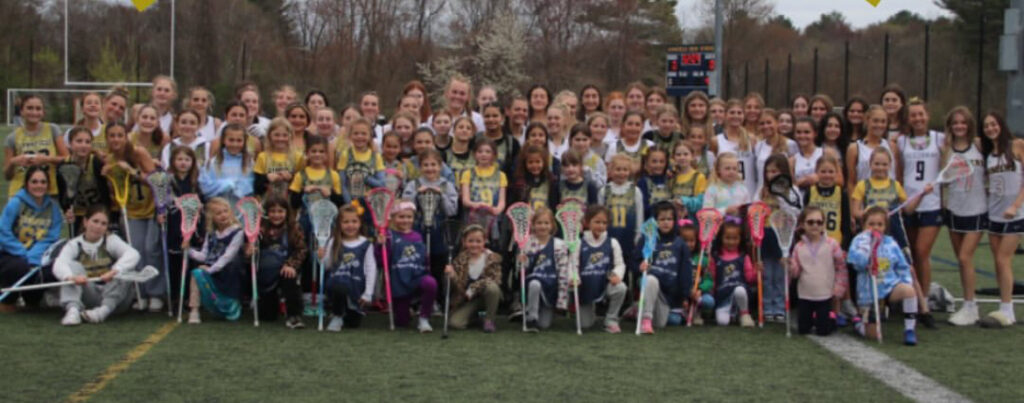 THE LHS girls’ lacrosse team celebrated senior night with Lynnfield youth lacrosse players on April 30. The Pioneers won an exciting matchup with Georgetown, 18-14. (Courtesy Photo)