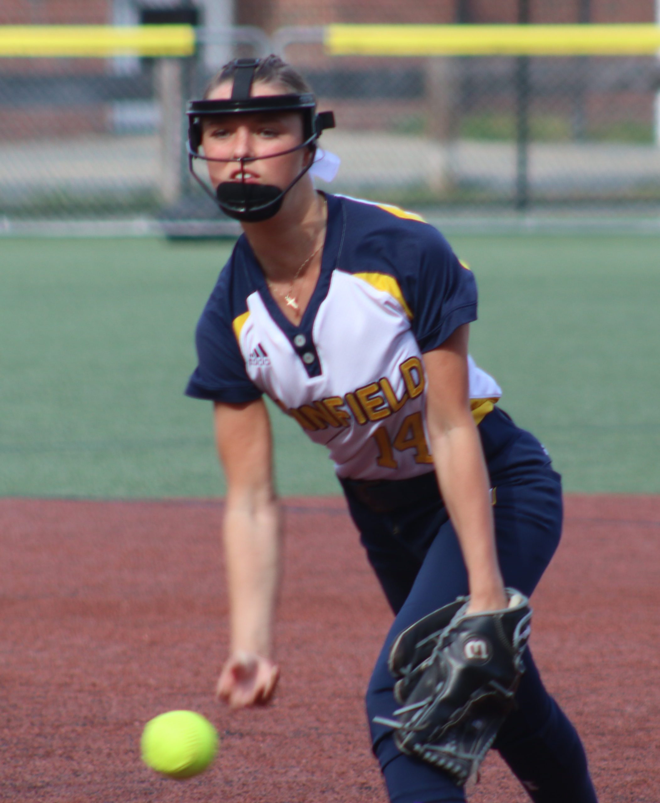 Brown pitched the entire game and did much better that the score showed. She gave up 14 hits, two walks, and struck out four. Only five runs were earned.