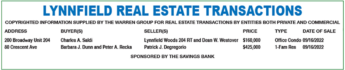 Lynnfield Real Estate Transaction October 5, 2022