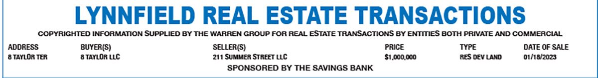 Lynnfield Real Estate Transactions February 8, 2023