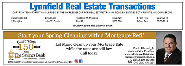 Lynnfield Real Estate Transactions published April 10, 2019