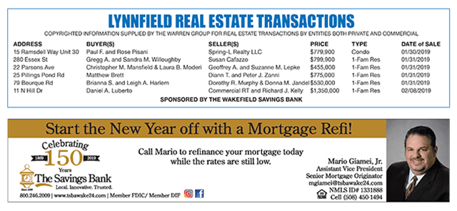 Lynnfield Real Estate Transactions published February 27, 2019