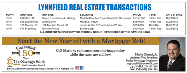 Lynnfield Real Estate Transactions published January 16, 2019