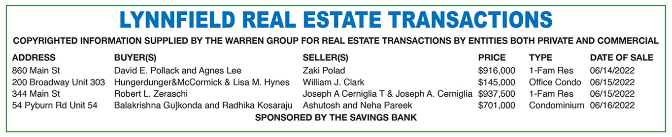 Lynnfield Real Estate Transactions published July 20, 2022