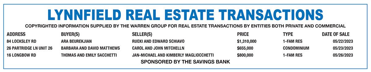 Lynnfield Real Estate transactions published June 14, 2023