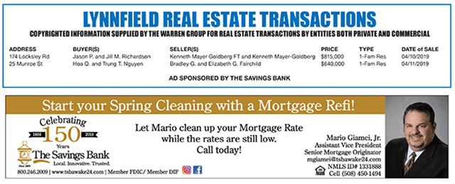 Lynnfield Real Estate Transactions published May 1, 2019