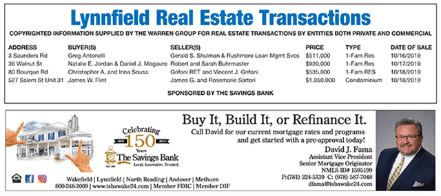 Lynnfield Real Estate Transactions published November 6, 2019