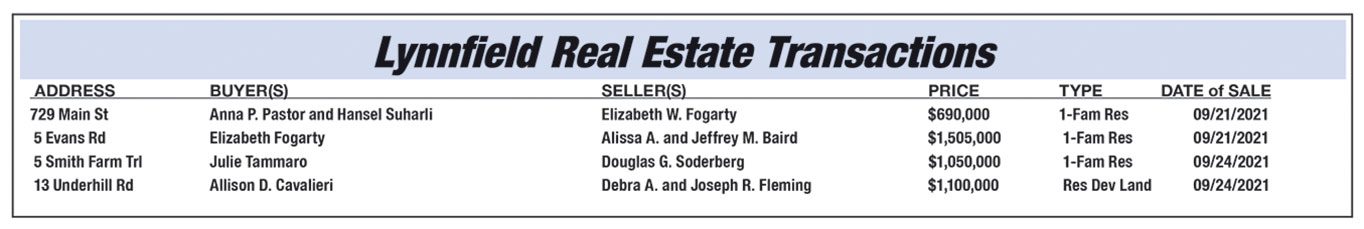 Lynnfield Real Estate Transactions published October 13, 2021