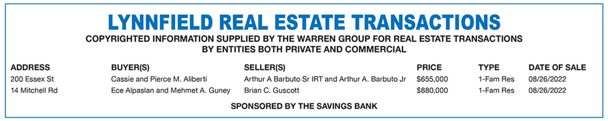 Lynnfield Real Estate Transactions published September 14, 2022