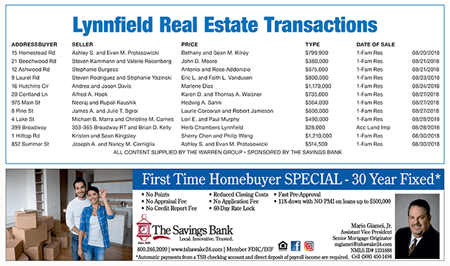 Lynnfield Real Estate Transactions published September 19, 2018