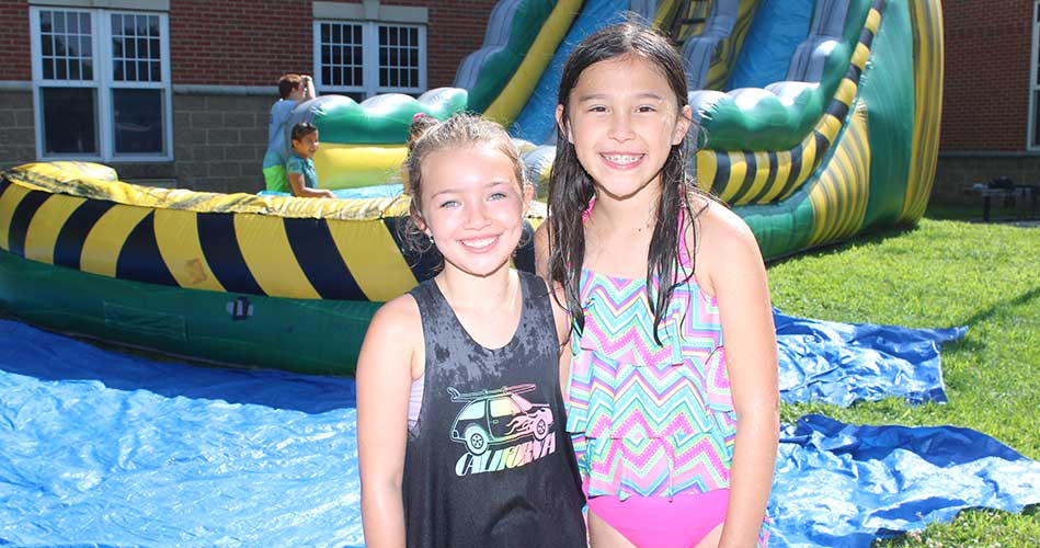 RECREATION STATION CAMPERS Violet Tenaglia (left) and Meyli Kao had a blast sliding down the inflatable waterslide for the last time this summer. (Dan Tomasello Photo)