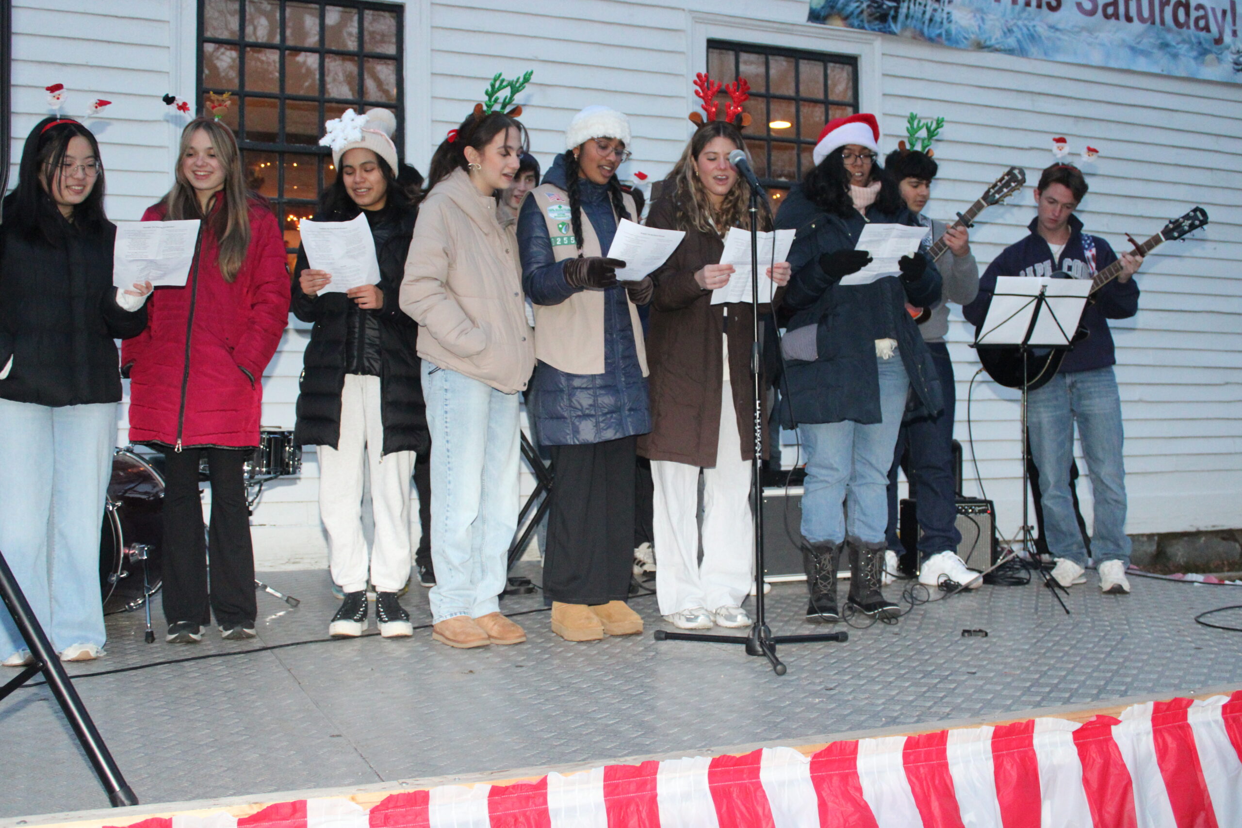 After Kossover Hansen welcomed the 300 attendees to the “Whobilation Celebration,” Lynnfield Middle School fifth-grader/singer-acoustic guitarist Ayla Davis kicked off the event’s musical performances by playing “Let It Snow, “Carol of the Bells” and “Christmas Tree Farm” by Taylor Swift. Ayla was given a round of applause by the celebration’s attendees.