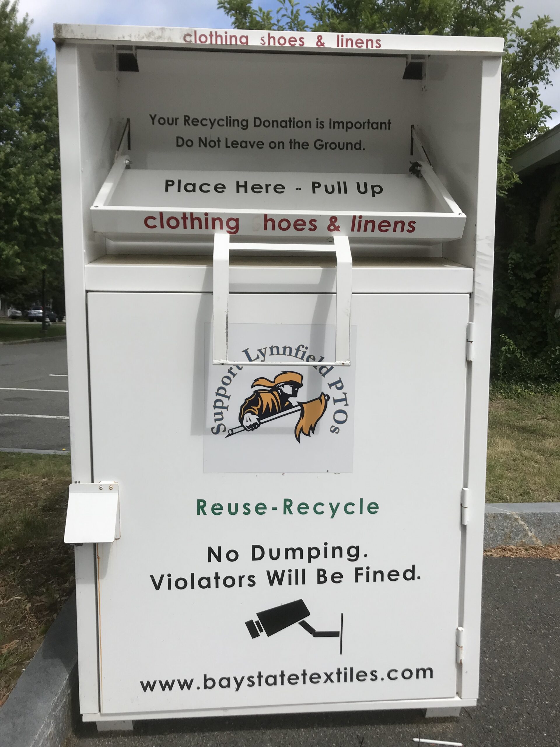 The easiest way to recycle textiles is to drop them off in the textile boxes located in the parking lots of any Lynnfield public school and at the Recycling Yard at Town Hall. All textiles must be bagged, clean and dry.