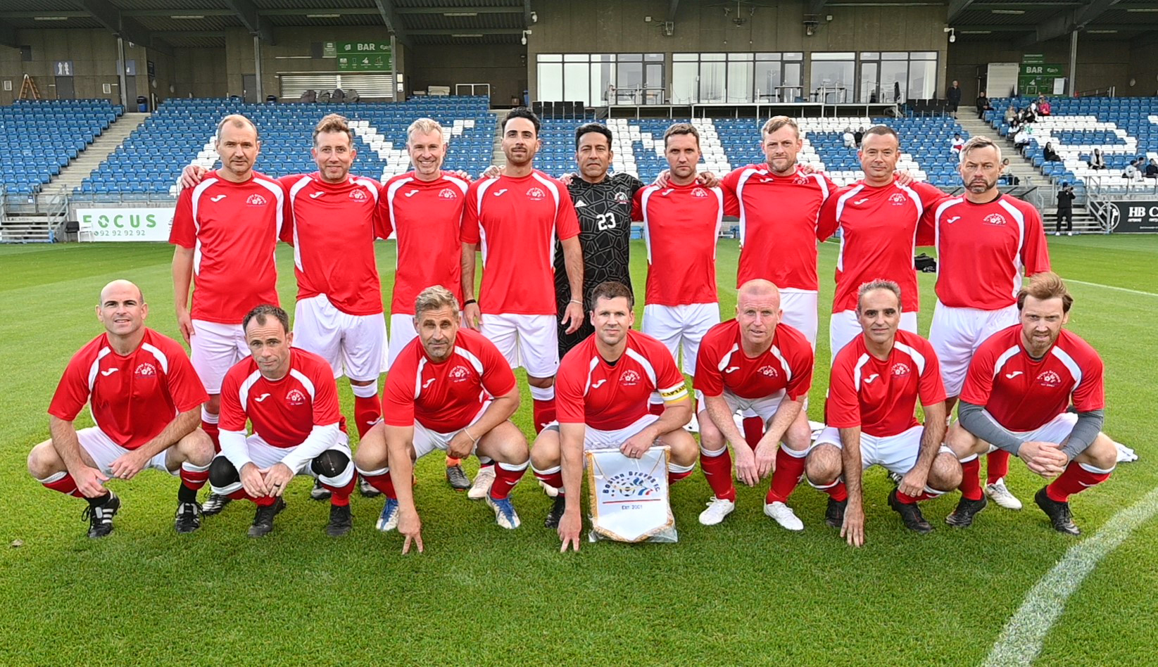 THE BRAVES on the pitch of Lyngby Stadium in Denmark, the home of Lyngby Boldklub. (Courtesy Photo)