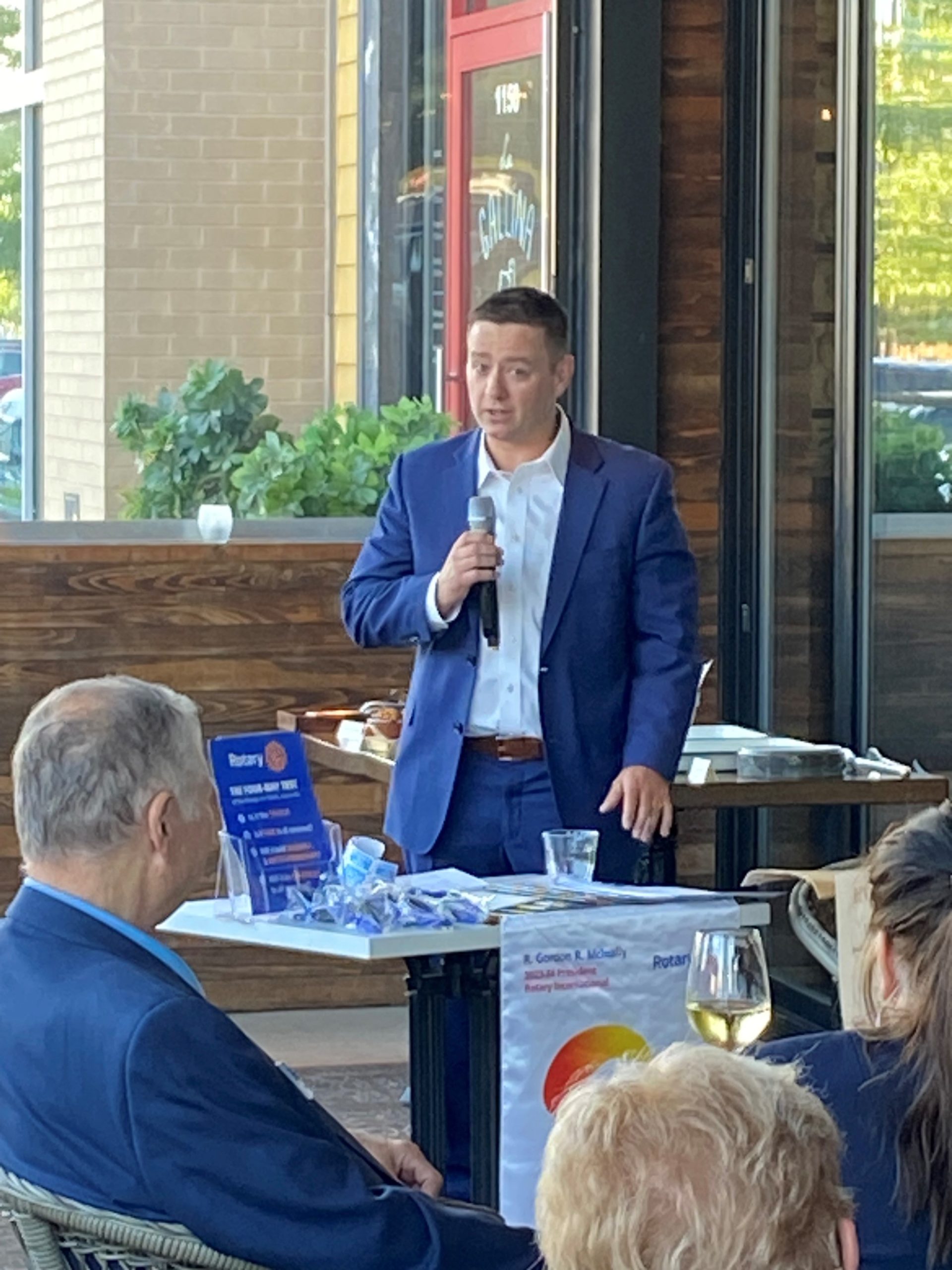 After welcoming comments and giving a brief outline of the night’s agenda, Travers introduced the first of the evening’s speakers, Luke Kimball. He is a Lynnfield Rotary past president and third generation Rotary member who represented a family steeped in Lynnfield Rotary history.