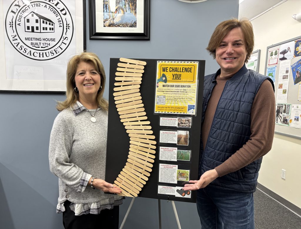 LYNNFIELD — Historic Lynnfield, Inc. is holding the Partridge Island Boardwalk Challenge fundraiser, which is encouraging residents to match the nonprofit organization’s $500 donation to help replace the Partridge Island Boardwalk which spans Lynnfield’s Reedy Meadow.