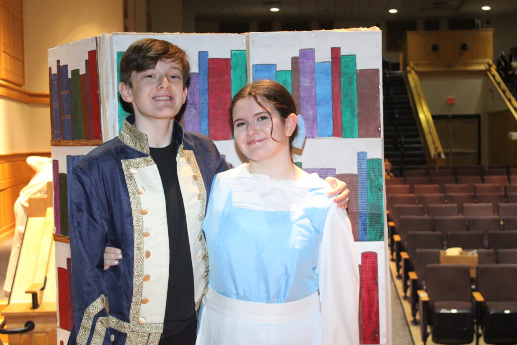 PATRICK MALONE portrayed the Beast and Belle Maccini starred as Belle during Lynnfield Middle School’s production of “Beauty and the Beast Jr.” last weekend. (Dan Tomasello Photo)