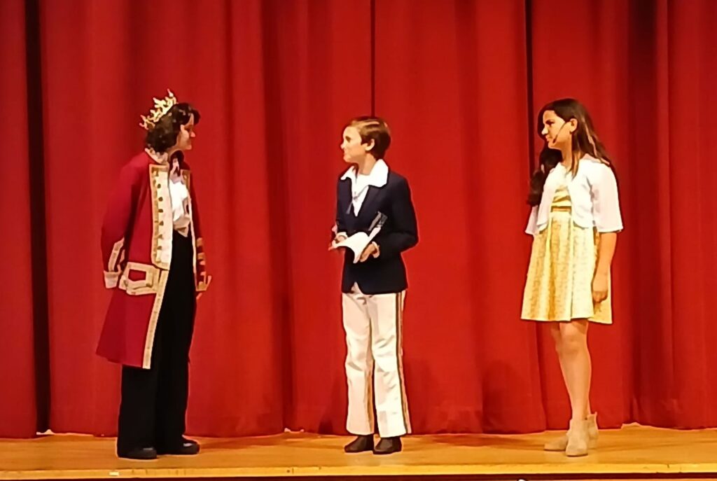 LYNNFIELD COMMUNITY SCHOOLS’ production of “Descendants: The Musical” last weekend featured, from left, Lee Malone as King Beast, Aidan Rystrom as Ben and Gabriella Moga as Queen Belle. (Shay Wainwright Photo)