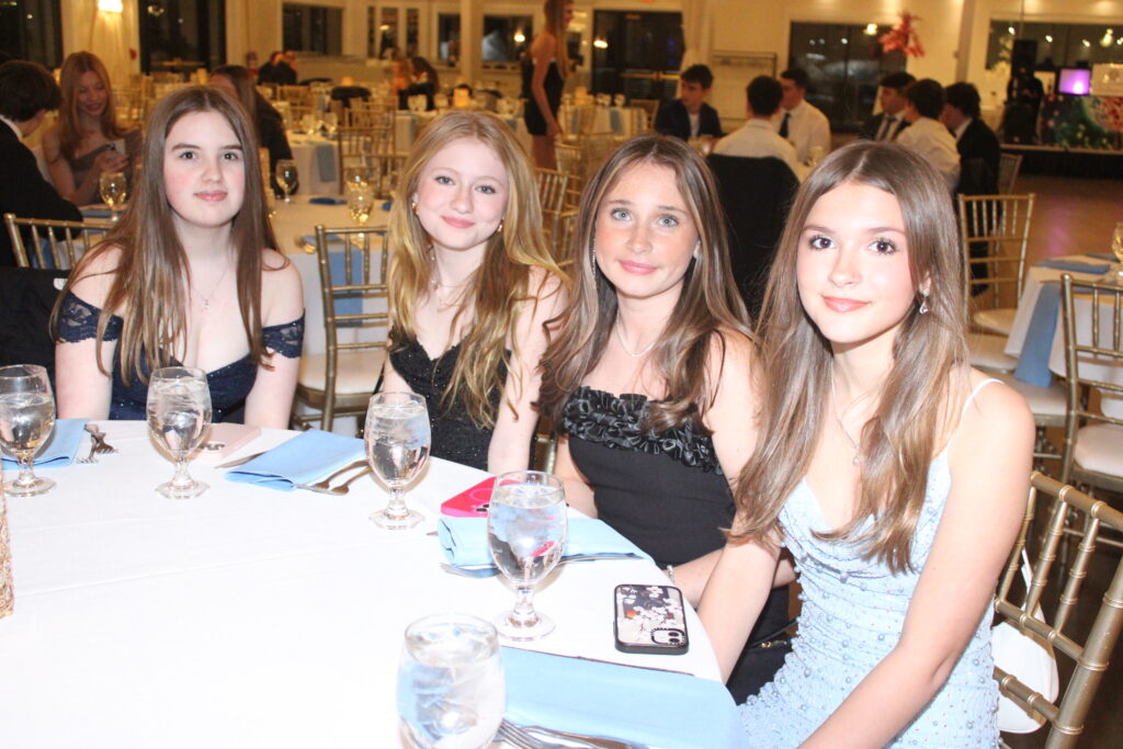 CLASSMATES, from left, Rachael Long, Hailey Crosbie, Lorna Murray and Meghan Geary had a great time during Lynnfield High School’s Snowball at the Danversport Yacht Club on Jan. 25. The dance is a highly anticipated tradition each January. (Dan Tomasello Photo)