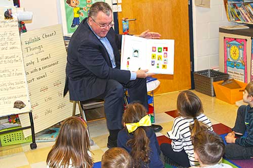 PHOTO: Lynnfield reads together April 12, 2018 SCHOOL COMMITTEEMAN Rich Sjoberg read “We’re All Wonders” by R.J. Palacio to Jill Juliano’s first grade class at Summer Street School April 2. The library hosted the event as part of its Lynnfield Reads Together initiative.(Dan Tomasello Photo) Published in the March 11, 2018 edition