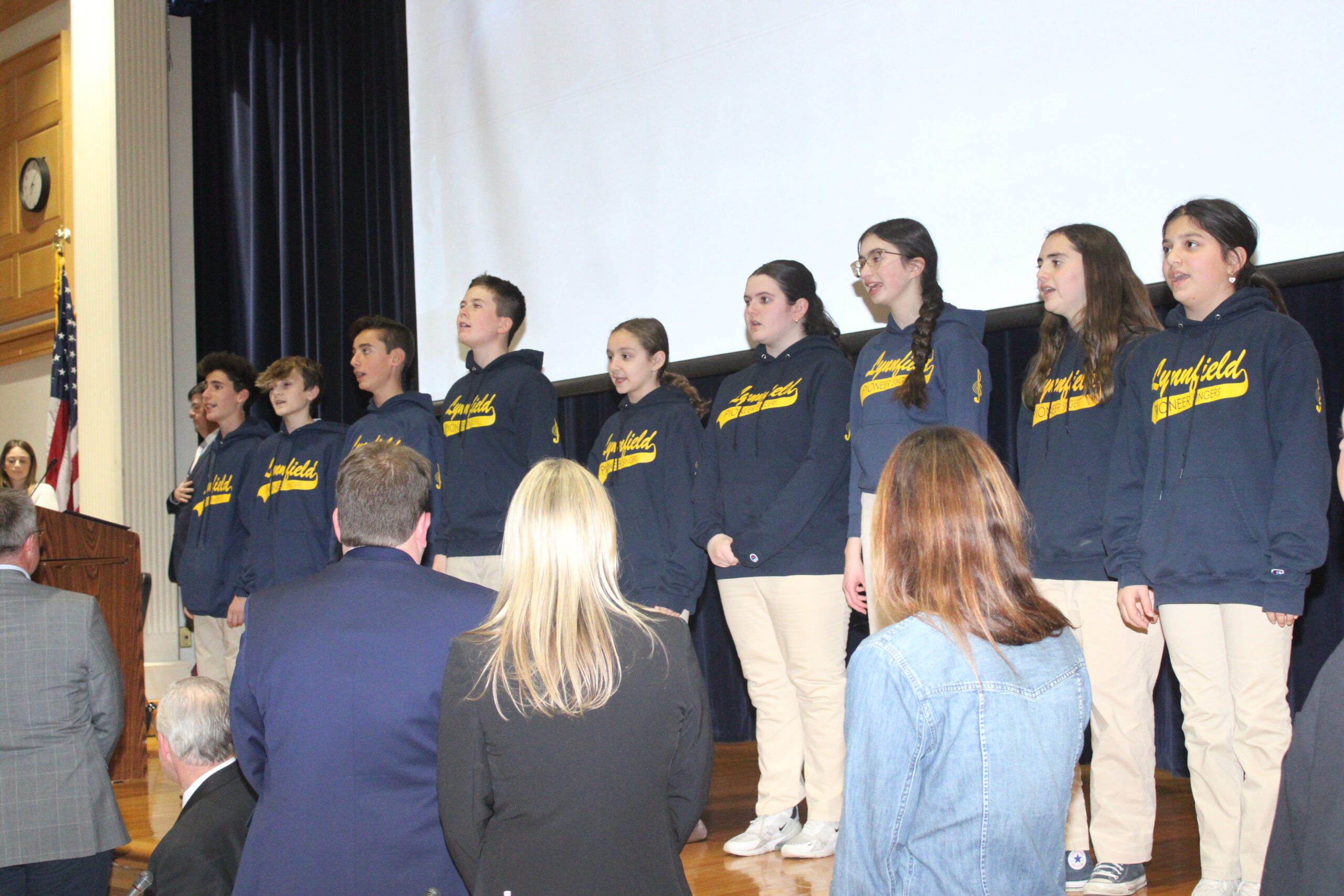 Music to democracy’s ears November 21, 2024 LYNNFIELD MIDDLE SCHOOL’S Pioneer Singers sang “The National Anthem” at the start of Fall Town Meeting in the LMS auditorium on Nov. 13. (Dan Tomasello Photo)