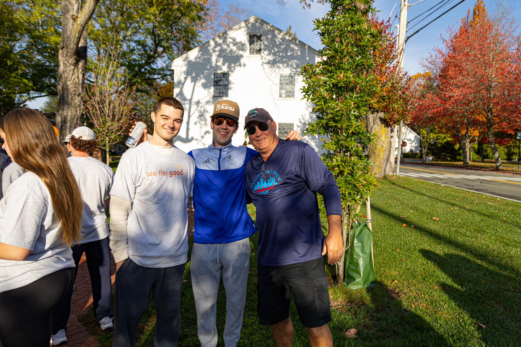 BUDDIES, from left, Ben Sieve, Alex Gentile, Alex Sieve, Jake Mallett and Bryan Mallett were smiling from ear-to-ear while at the start of the third annual See The Good 5K Walk at the Town Common on Oct. 19. The walk is held in memory of Sharla Sieve, who passed away from a heroic battle with stage 4 metastatic colorectal cancer in December 2022 at the age of 49. (Courtesy Photo)