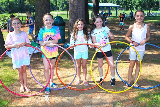 PHOTO: Time to play July 3, 2019 RECREATION STATION CAMPERS, from left, Giuliana Nastari, Avery Fleming, Ella Pascucci, Sophie Morgese and Estelle McClory had a blast playing with Hula Hoops on June 28. (Dan Tomasello Photo) Published July 3, 2019