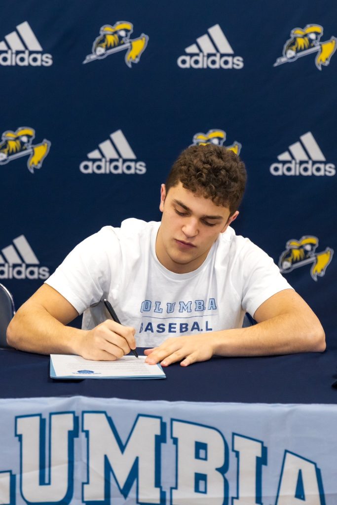 Adamo recently signed his National Letter of Intent to the Columbia University baseball team surrounded by friends, family, teachers and coaches at LHS. (Courtesy Photo)