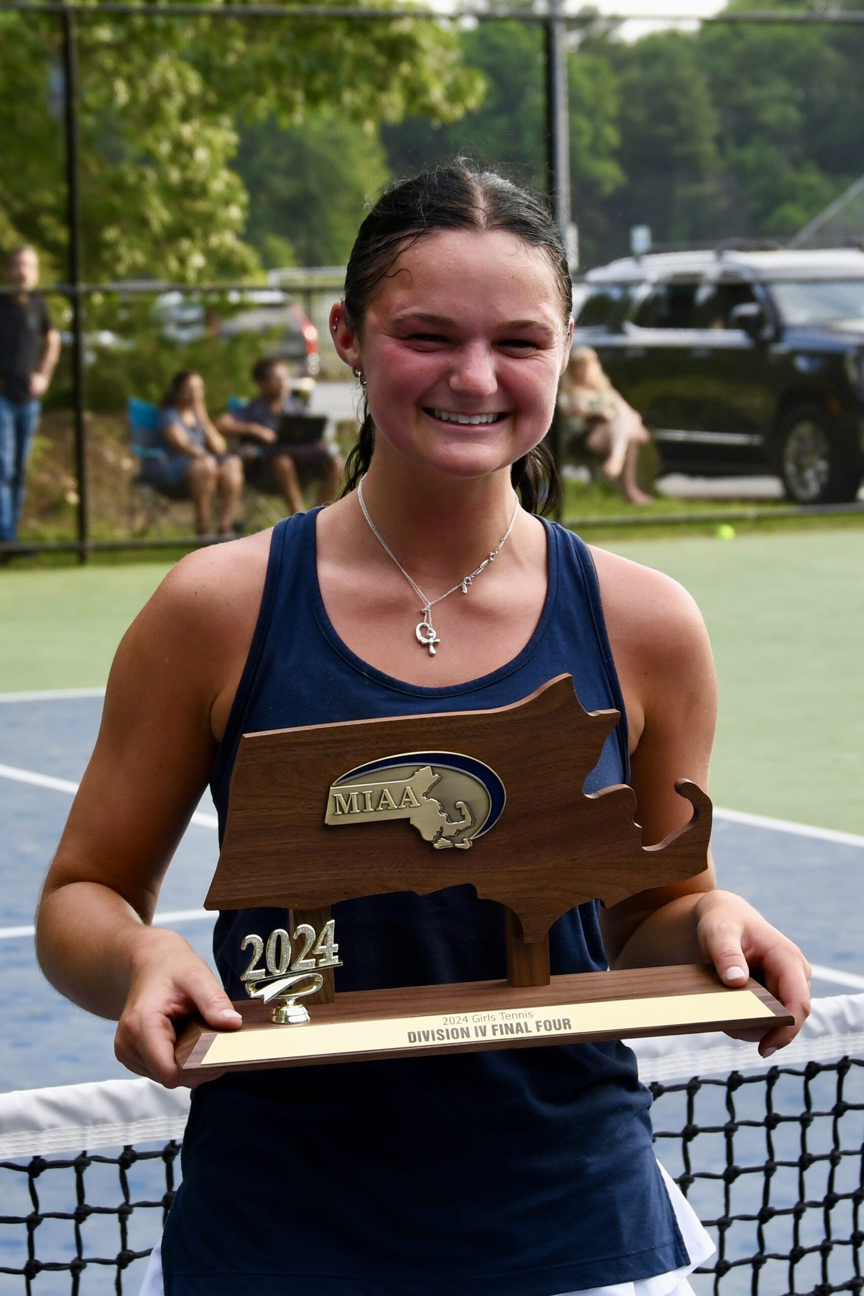 Sieve clinched the girls’ tennis team’s second straight Division 4 Final Four appearance after winning her third singles match in three sets during the Pioneers’ 3-2 victory over Bromfield in the Elite Eight on June 5. Sieve’s match lasted three-and-a-half hours. (Jamie Hayman Photo)
