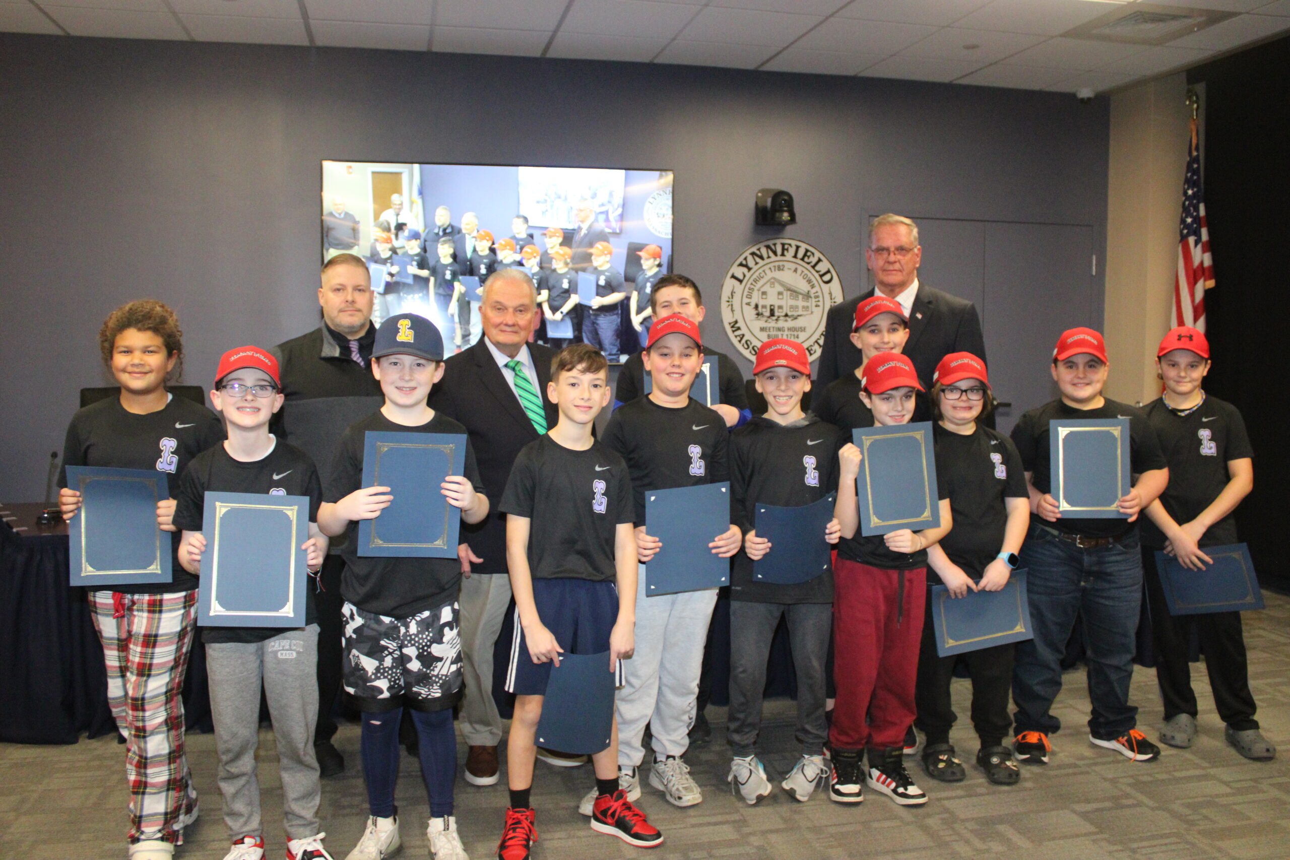 THE SELECT BOARD presented citations on Monday, Dec. 18 to the 11U Lynnfield Pioneers Jimmy Fund team, also known as Team Lavender, for raising $17,046.62 for the Jimmy Fund and the Dana-Farber Cancer Institute last summer. Team Lavender also placed first out of 104 teams in the Jimmy Fund Little League and finished first in the team’s division. (Dan Tomasello Photo)