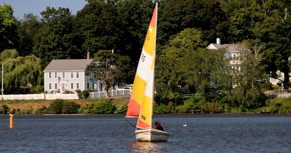 THIS SAILOR took his boat for leisurely spin around Lake Quannapowitt recently. (Lennie Malvone Photo)